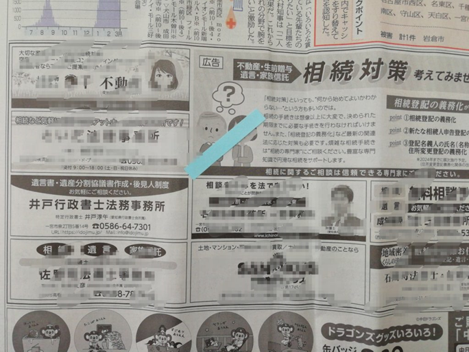 中日新聞(3月18日)に弊事務所の広告を掲載いたしました。どんなことでもまずはお気軽にご相談ください。